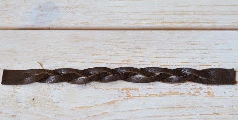 - Чтобы получить плетеное изделие, берем три одинаковые ленты из кожи.