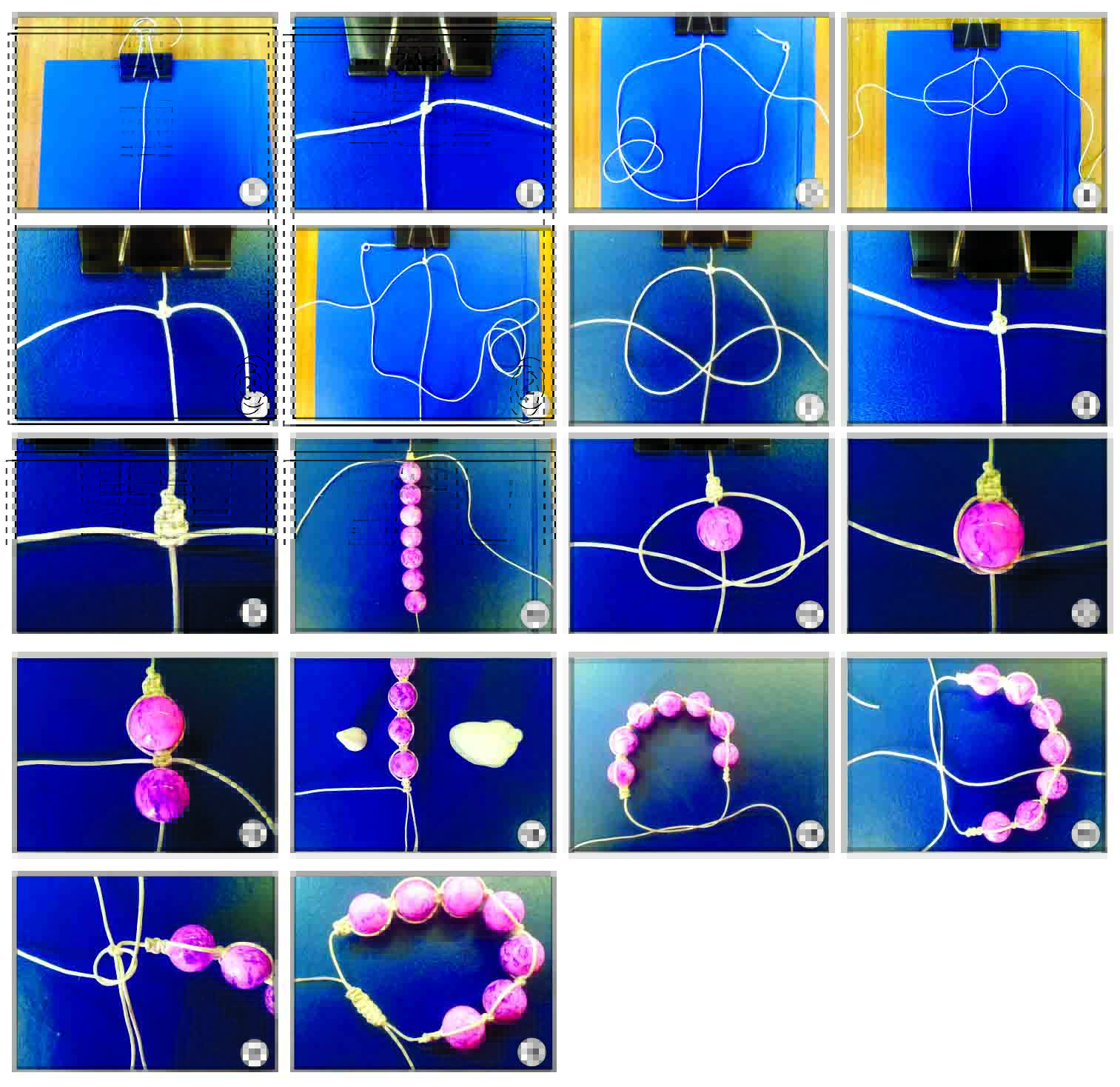 Таким образом, браслет — это чередование левых и правых узлов. Именно эти узелки и являются расстоянием между бусинами.