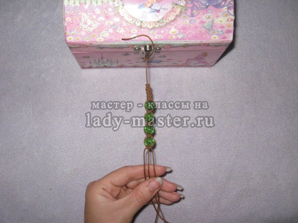 Дополнительно нужен будет предмет с петлей, можно брать чашку, либо шкатулку, главное, чтобы можно было привязать край шнура, чтобы было удобно плести. Я беру шкатулку.