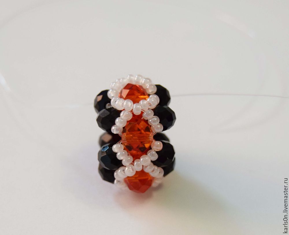 10. Кончиком лески левой стороны пройтись по кругу по крайним бусинам левой стороны кольца и затянуть.