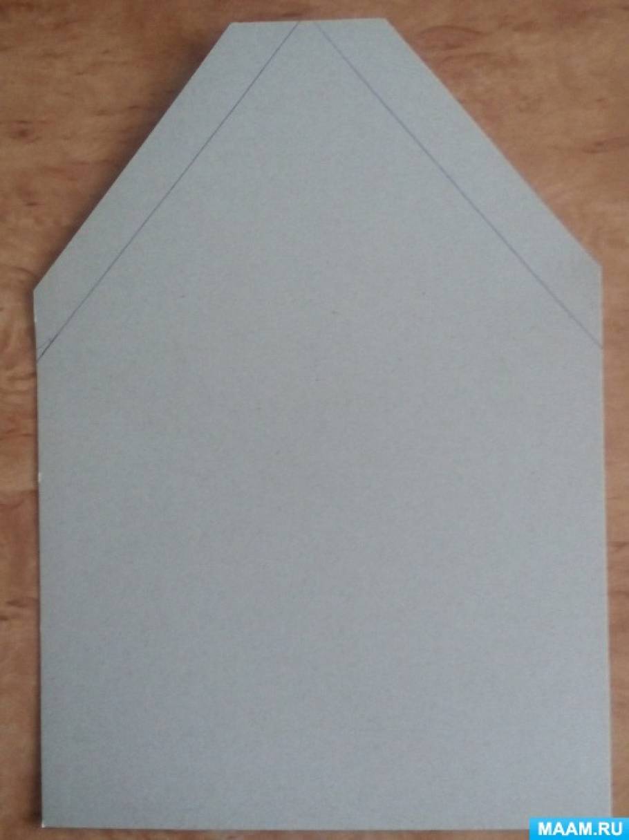 Для крыши вырезаем 2 прямоугольника с фигурным краем.