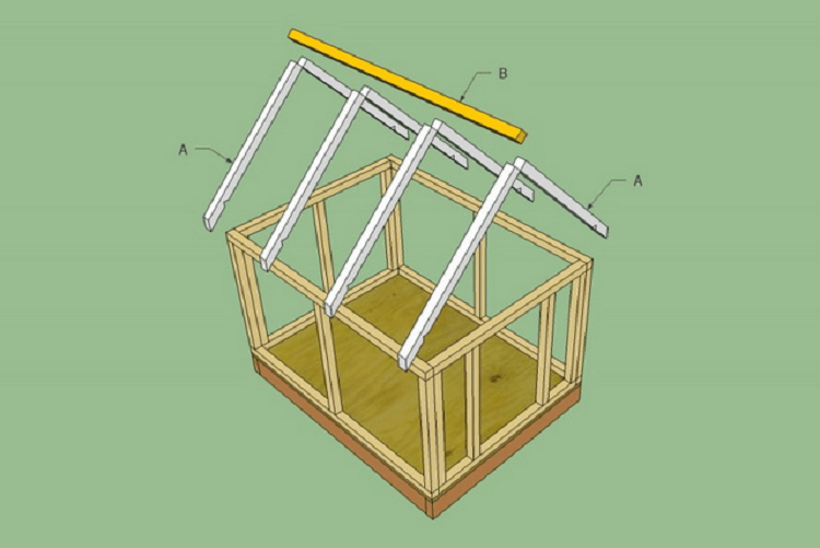 - Для крыши раму из бруса обшить доской и перекрыть рубероидом.