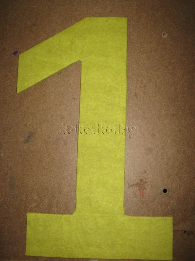 1)На куске картона рисуем желаемую букву или цифру, вырезаем ее с помощью канцелярского ножа в двух экземплярах – это будут задняя и передняя стороны поделки.