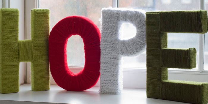 Для начала картонную заготовку необходимо смазать клеем, а затем аккуратно обкрутить контур каждой буквы шпагатом. Материал можно оставить неокрашенным или покрасить в любой понравившийся цвет. А также разрешается задекорировать любыми подручными мелочами: пуговицами, бисером, бусинами или декоративными перьями.
