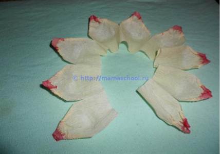 Всем лепесткам придать немного разную форму путем растягивания бумаги, чтобы имитировать живой распускающийся цветок.