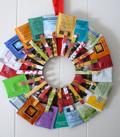 Букеты из чая состоят из нескольких цветов. Чтобы они получились, нужно согнуть два верхних уголка у каждого пакетика навстречу друг другу, образуя форму лепестка. Соединить несколько лепестков с обратной стороны степлером, скотчем или скрепками.