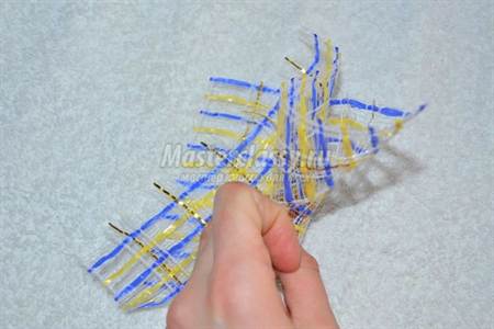 - Нарезать крепированную бумагу длинными полосками (не более 1 сантиметра в ширину);