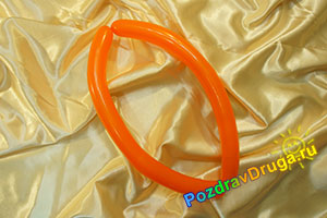 - Необходимо надуть колбаску из шарика, не стоит очень сильно надувать, так как потом будет сложно скручивать и с ней работать. Сделайте так, чтобы шарик был немного мягким, но достаточно упругим.