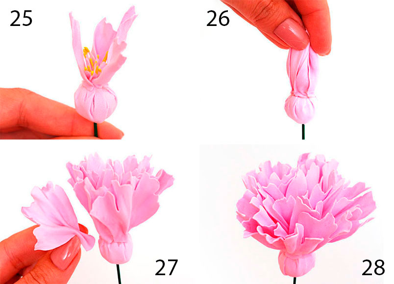 При нагревании и механическом воздействии каждой детали можно придать желаемую форму и объем. Использование специальных молдов помогает отобразить текстуру на поверхности цветочного лепестка.