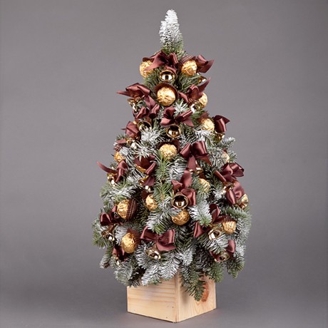 Однако, новогоднее настроение можно создать не только при помощи елки, но еще и новогодних флористических композиций, букетов из живых цветов с новогодней «направленностью». В эти дни буквально повсюду видны маленькие елочки, букеты, составленные из еловых веток, специальные праздничные композиции со свечами и шишками, а также елочки, составленные из высушенных листьев. Такое эффективное дополнение может только лишний раз подчеркнуть новогодний декор, но и даже стать самостоятельной заменой новогодней елки.
