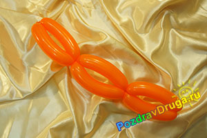 Рядом с этим элементом на свободной части шара поэтапно скручиваются 3 пузырька длиной примерно в 3 см, которые размещаются горизонтально по отношению к первой конструкции. Затем оставшийся конец шара поворачивается так, чтобы он смотрел вбок, находясь над одной из ложбинок, образованных элементом из 4 пузырей.
