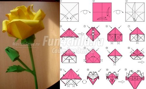 Попробуйте сложить розу, лилию и колокольчик по предложенным схемам: