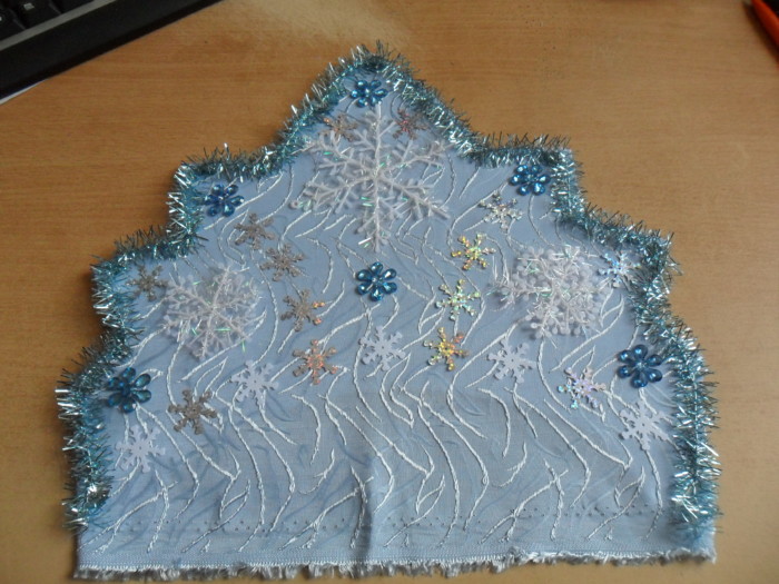 - Кокошник Снегурочки или Снежной королевы (со снежинками).