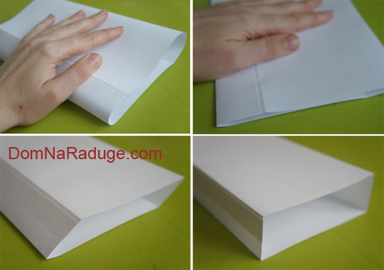 - Вновь загните боковые части дна изделия к середине таким образом, чтобы одна из них немного легла на вторую.