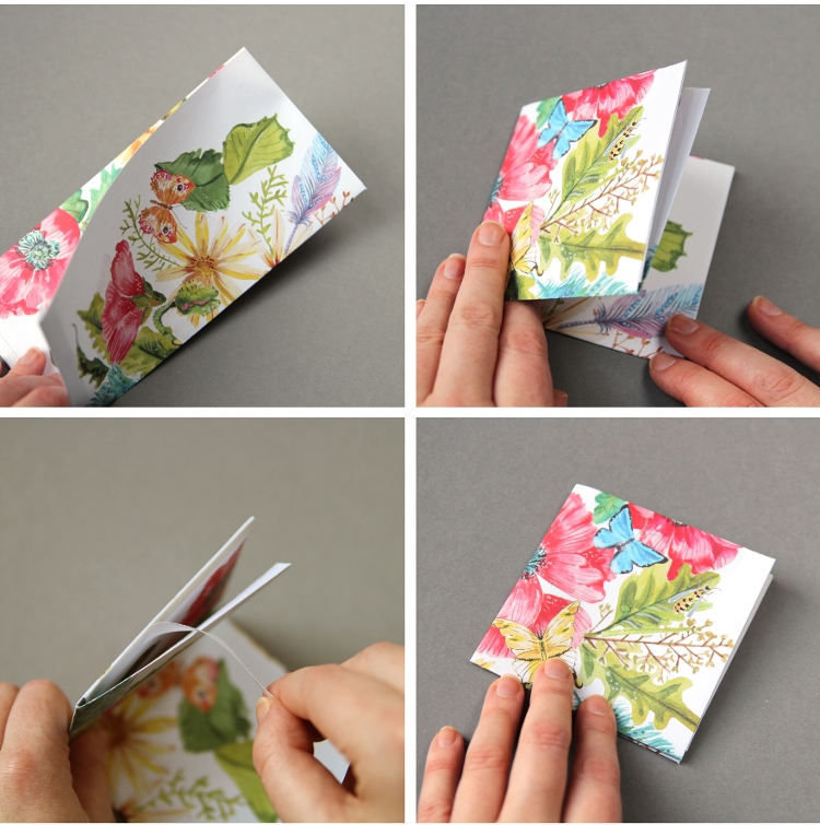 - С непроклеенной стороны выровняйте края и сложите бумагу пополам.