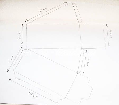 Итак, начинаем делать подарок: сначала шаблон. Сделать его легко: короткие стороны по 5 см, длинные – по 10 см. Чем больше будет короткая сторона, тем меньше «кусков торта» получится. Из приведенного расчета получается 13 кусочков торта из бумаги. Чтобы сделать шаблон и сделать правильные углы между линиями, соблюдайте одно правило: визуально и интуитивно ставьте линейку перпендикулярно получающимся граням.