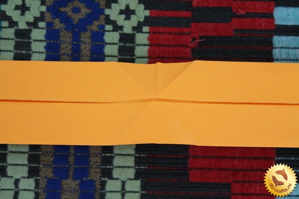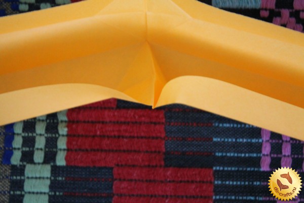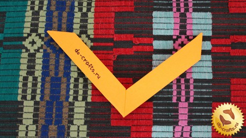 Шаг 4. Складываем каждое крыло бумеранга. Переворачиваем его и складываем правую сторону каждого крыла. Загибаем его сзади на 2.5 см. Загибаем крылья бумеранга одинаково с одной стороны.
