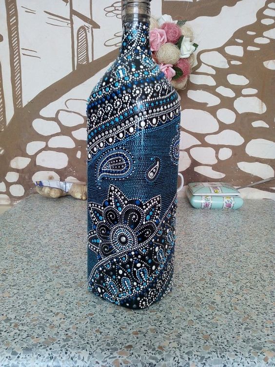 Если художественная роспись для вас является несложной техникой, то простую бутылку можно превратить в произведение прикладного искусства: