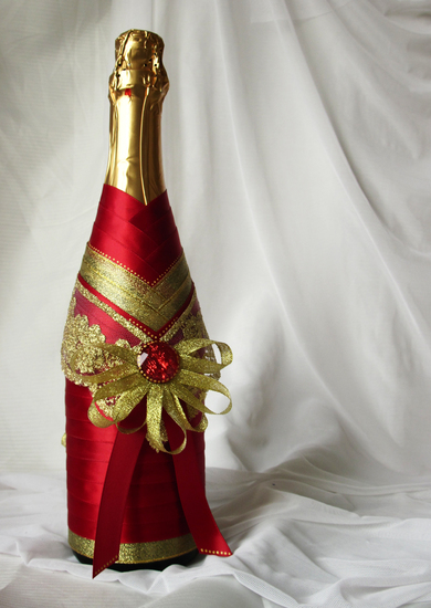 Украшаем своими руками шампанское: пускаем в ход ленты и бусины