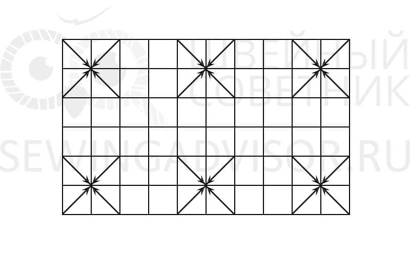 Для удобства выполнения схемы на ткань можно переносить не только точки, а также направляющие линии.