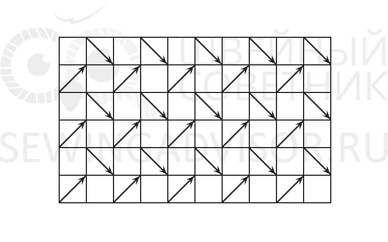 Квадраты прочерчиваем по диагонали через один, меняя наклон в каждом следующем ряду: