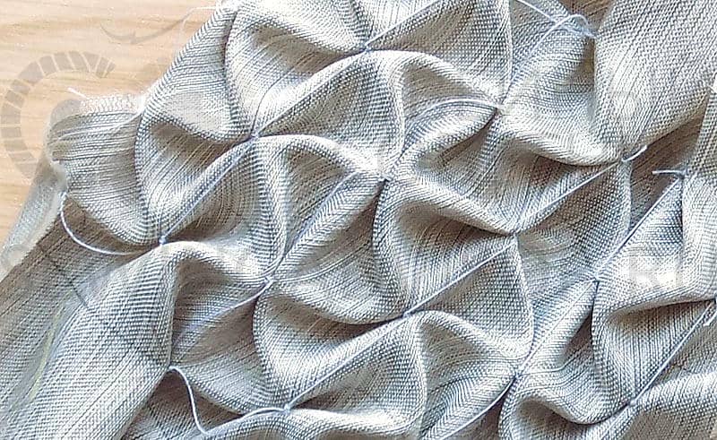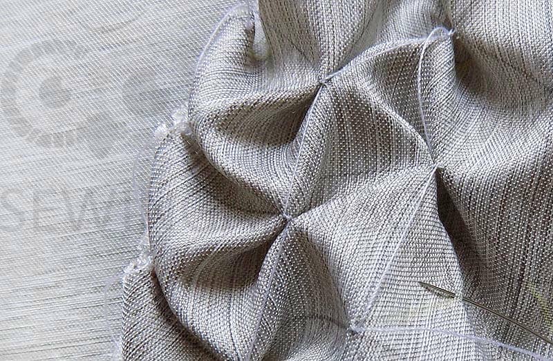 - Натяжение нити должно придавать складке объем, но не фиксировать.