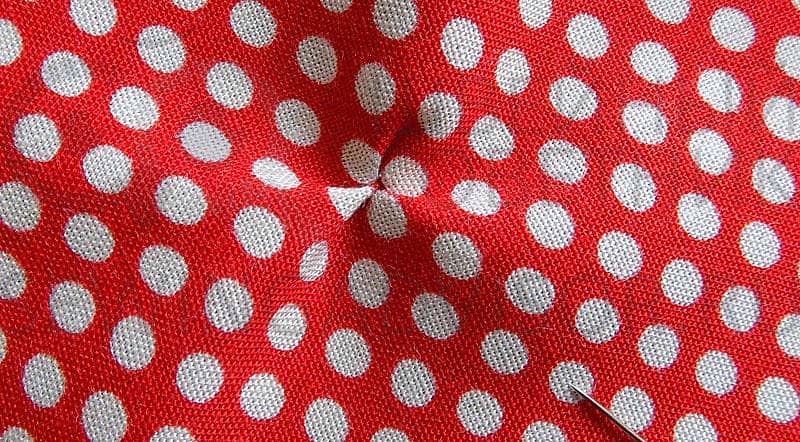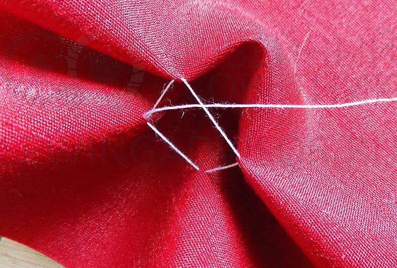 Для сборки нужно использовать прочную нитку, ее цвет должен подходить под тон материала. Иголку надо вкалывать и вынимать таким образом, чтобы точка оставалась посередине.