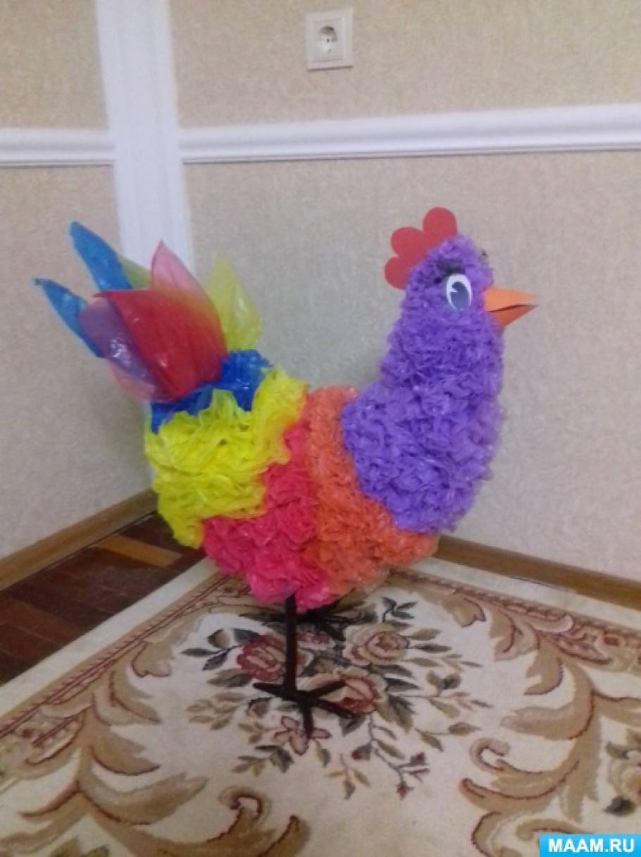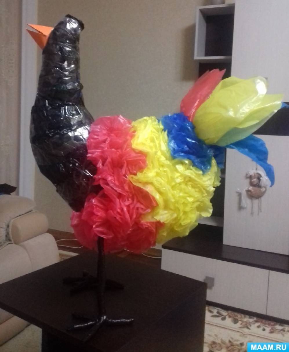 Создаем красивого петуха, из пакетов для мусора. Для изготовления нашего петушка,