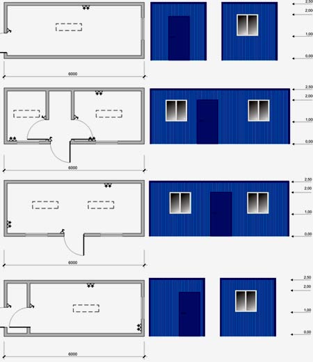 Чаще всего владельцы дачных участков предпочитают строить бытовки 6х3 своими руками, так как этот размер является более универсальным. Разные владельцы по-разному используют помещение, поэтому каждому нужен свой чертеж, что сделать вполне реально. За основу можно взять типовую схему каркаса бытовки. А дальше уже добавить нужные проемы и перегородки.