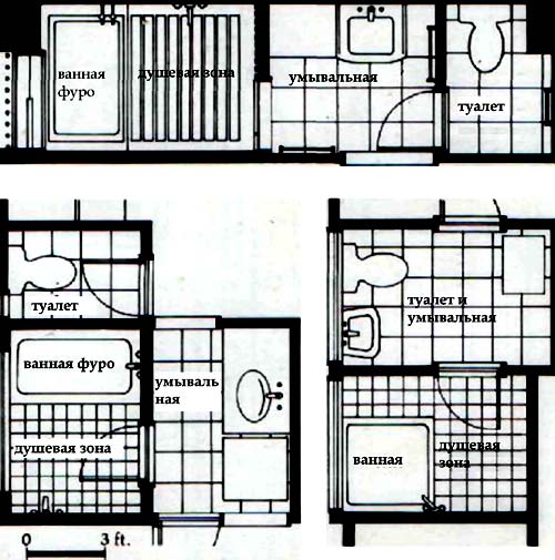 Несколько вариантов планировки ванной комнаты