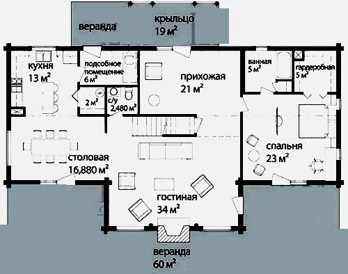 Размещение и планировка ванной комнаты на плане дома из бруса
