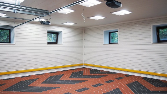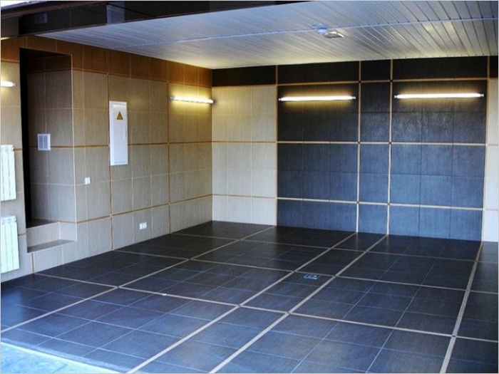 В гаражах, которые оснащены отопительной системой, можно пользоваться любыми материалами для отделки пола, потолка и стен.