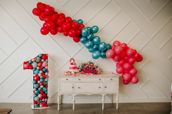 - цифр и букв из различных материалов. Их легко сделать самим из картона, декорировав объемными цветами из гофрированной бумаги, тейп-лентой или шариками;