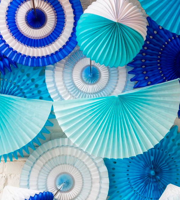 Одним из самых простых, но в то же время бюджетных и красивых вариантов является украшение фотозоны для выпускного вечера разноцветными веерами, которые легко сделать самостоятельно.