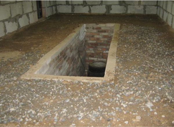 - Стенки смотровой ямы облицовываются кирпичом, который располагается ребром.