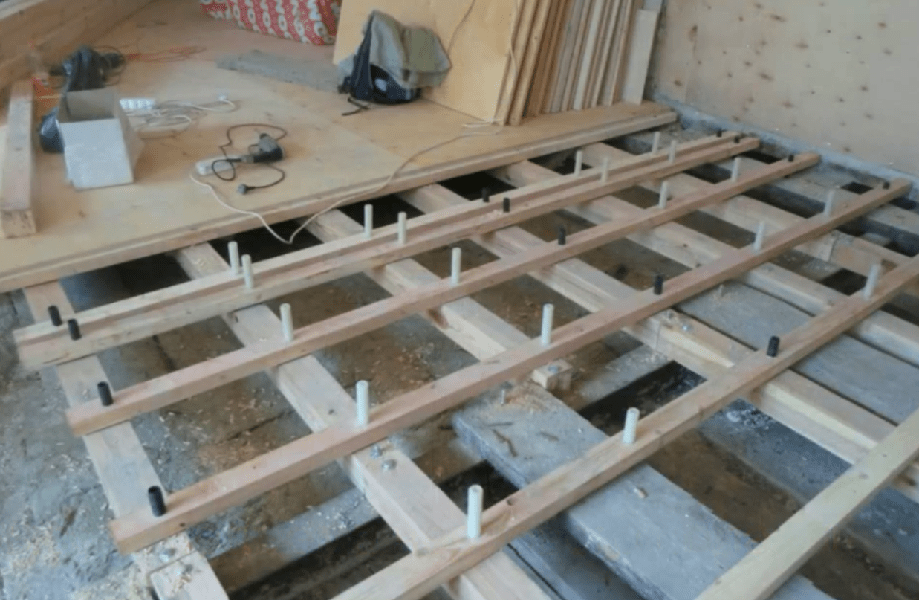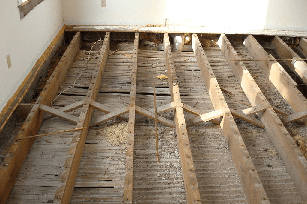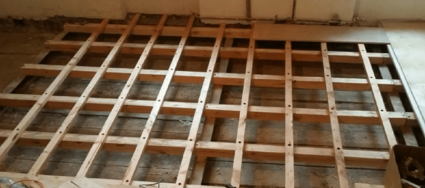 Как снимите старый пол, проверьте основание.Проверьте лаговые брусья на предмет гниения, усыхания и плесени.