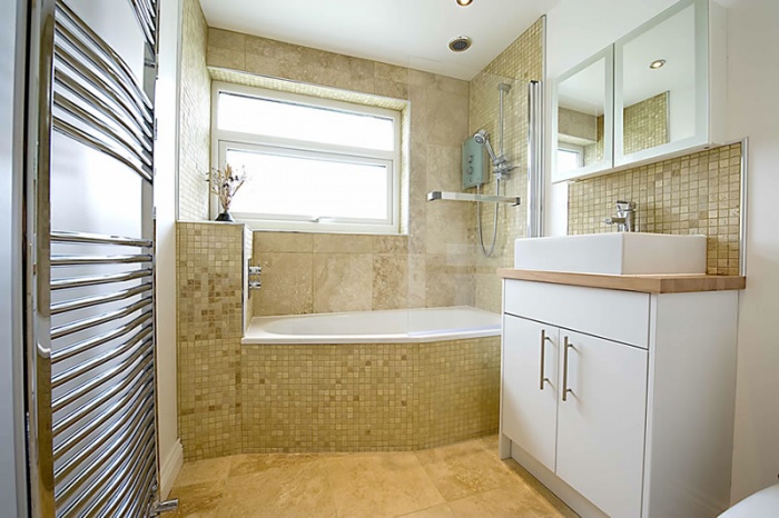 - Совет 2. Что выбрать: плитку или стеновые панели? Конечно же, первый вариант, поскольку панели отбирают кучу свободного пространства, которого и так не хватает.