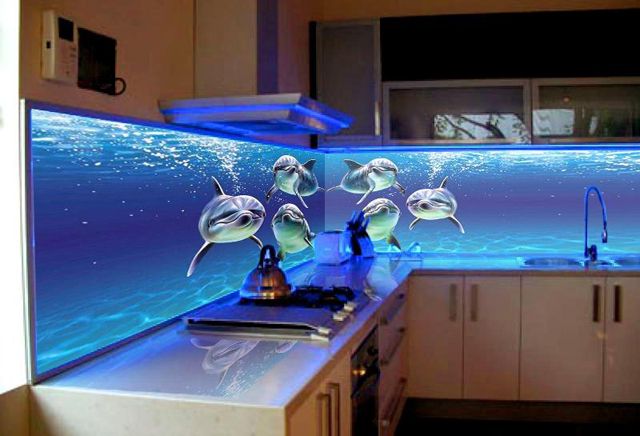 Несмотря на то, что по своему основному назначению кухня относится к подсобным помещениям, в её оформлении могут быть использованы самые неожиданные фантазии дизайнеров. Для их воплощения в жизнь, кухонный фартук является самым подходящим элементом.