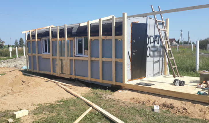 Строительство и укрепление стены вагончика бытовки