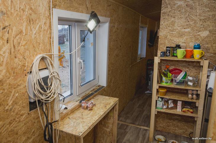 Стены дачной бытовки.