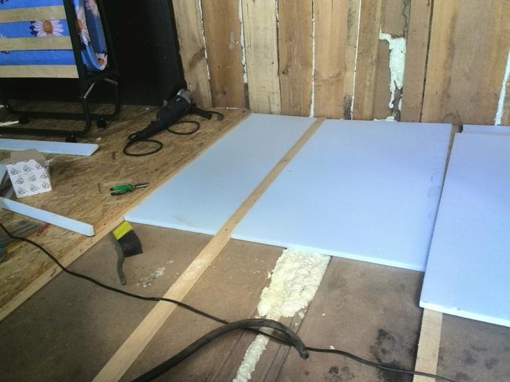 Устройство полов в вагончике производится поэтапно: