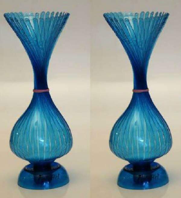 В донышке чаши вазы нужно прорезать отверстие размером с горлышко подставки, вставить горлышко в отверстие и закрутить пробкой.