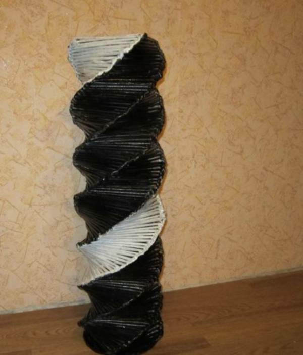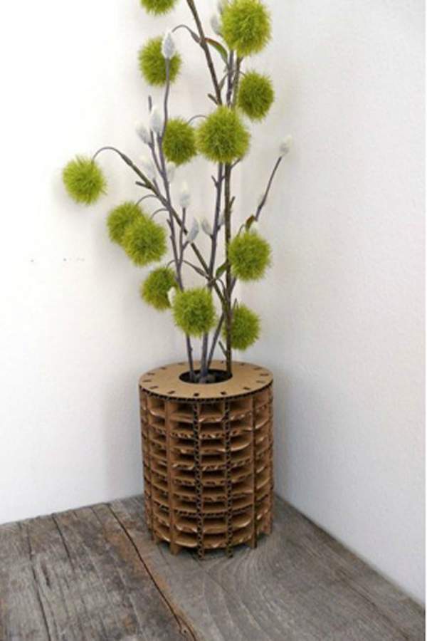 Да-да, вы не ошиблись, из картона тоже можно сделать стильную напольную вазу. От дорогой дизайнерской её не отличить, просто поверьте. А если не верится, смотрите сами.