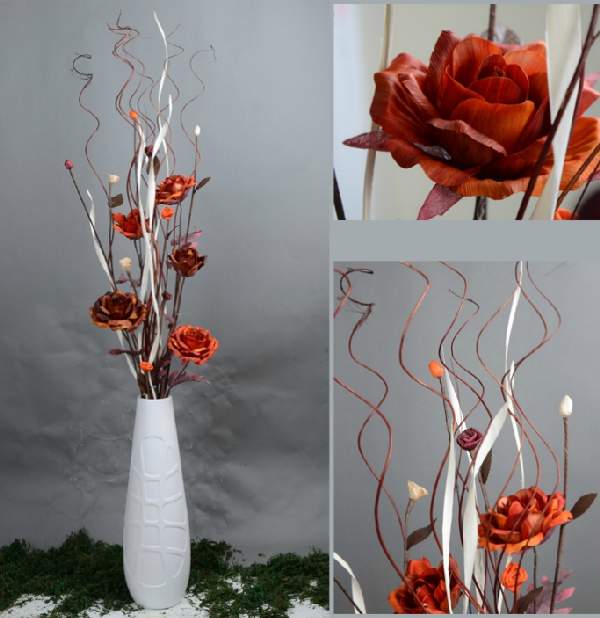 Обратите внимание, что не все виды самодельных шедевров подходят для живых букетов, а значит, цветы для напольных ваз будем также делать своими руками.