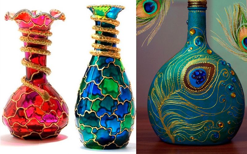 Декор может быть вычурным либо совсем простым. К примеру, декорировать вазу можно кружочками небольшого размера, разными полосками или зигзагами. Украшение может быть наружным и внутренним. В каждом случае можно создать особенный дизайн, который внесет в интерьер ноты свежести и эстетики.