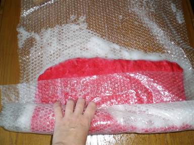 5) Накрываем стол пупырчатой плёнкой. Работу будем выполнять на плёнке.