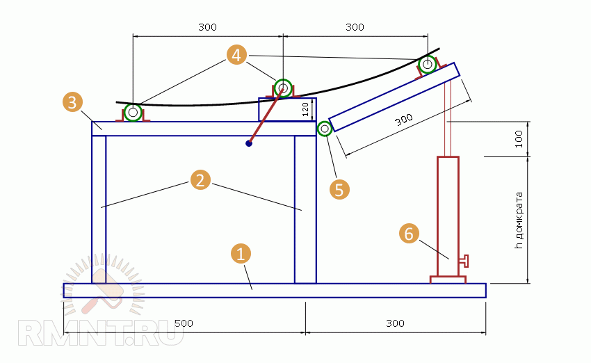 - Опорной трубы, на которую укладывается исходная заготовка (вместо трубы можно смонтировать небольшой приемный столик из холоднокатаной стали толщиной 6 мм).
