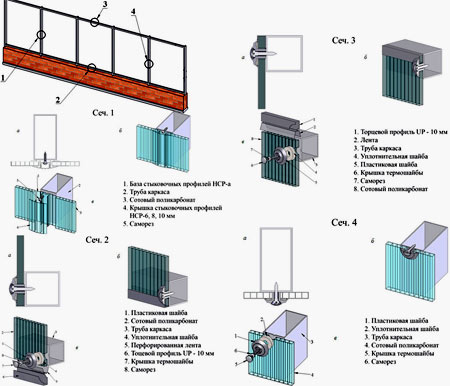 На фото ниже представлена схема ограждения с изображением ее основных составляющих деталей.