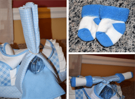 Такой чудо-подарок, изготовлен собственными руками приятно удивит гостей и родителей ребенка не только своей оригинальностью, но и практичностью, ведь такой презент можно легко разобрать и использовать предметы по их прямому назначению. А учитывая современные цены на детские принадлежности, он еще и здорово сэкономит денежные средства.