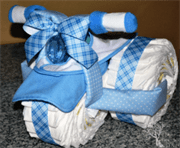 А вот еще несколько идей подарков из подгузников для новорожденных: